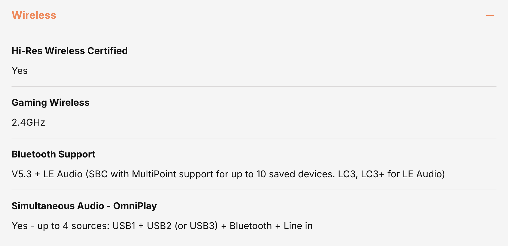 - Hi-Res Audio wirelessly for ultra-fidelity 96kHz/24bit