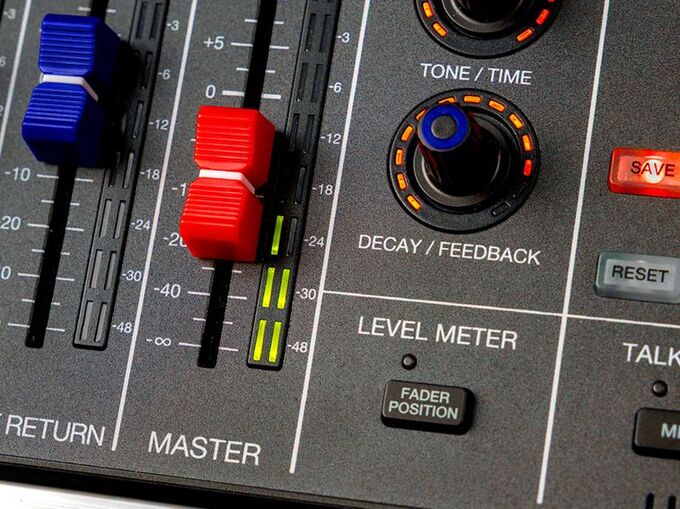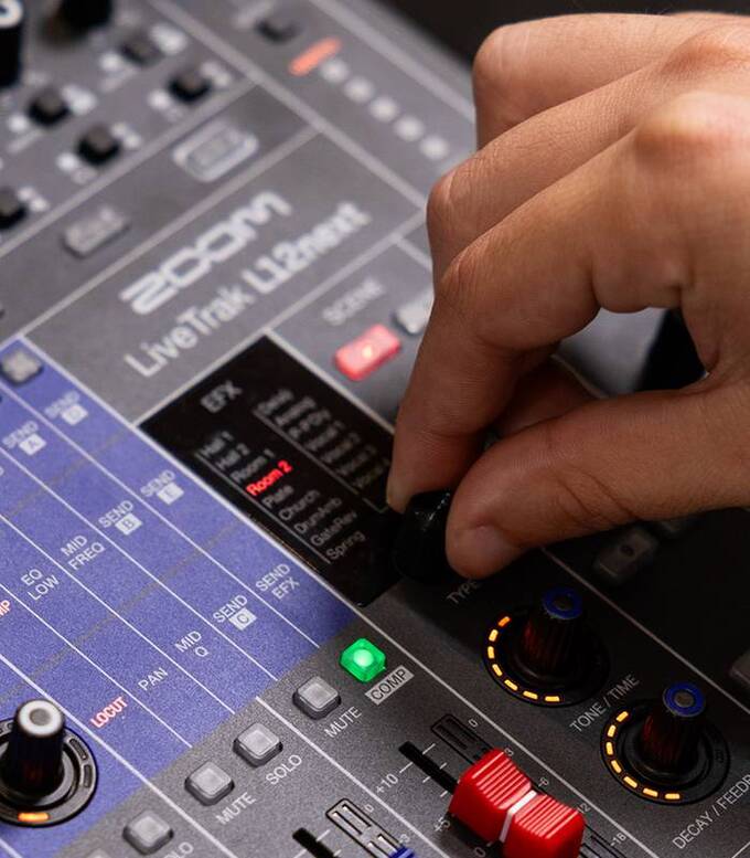 16 built-in effects with fully adjustable parameters. Choose from delay and reverb effects, then apply them to any channel.