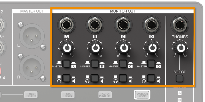 With five independent Monitor Outs, each musician can have a personal mix. Outputs support a stereo mix for headphones and in-ears, or a mono mix for stage monitors, making it flexible for live or studio use.