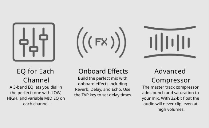 The LiveTrak L6max is packed with all the features you’d expect from a full-size mixer, plus a multi-track