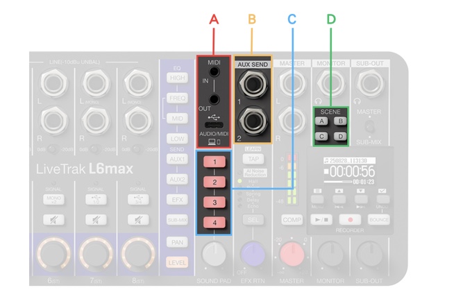 For huge drums and loud guitar solos, the L6max records clip-free audio in 32-bit float. Channels 1-4