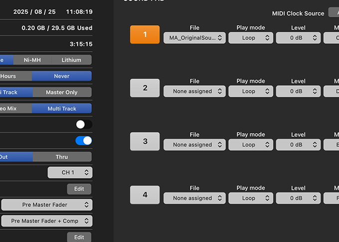 individual tracks are saved to the SD card for future mixing.